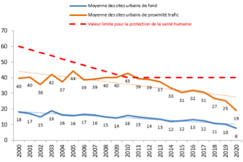 Il en résulte une diminution progressive des concentrations, plus difficile à affirmer du fait de la multiplicité des sources qui rend moins efficace l’action ciblée sur ces polluants.
